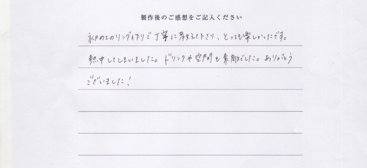初めてのリング作りで丁寧に教えてくださりとても楽しかったです。