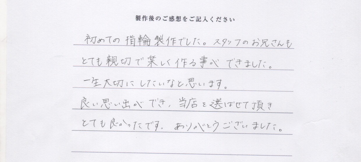 手作りペアリング|良い思い出ができ当店を選ばせて頂きとても良かったです。 ありがとうございました