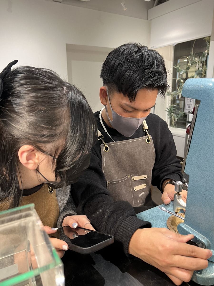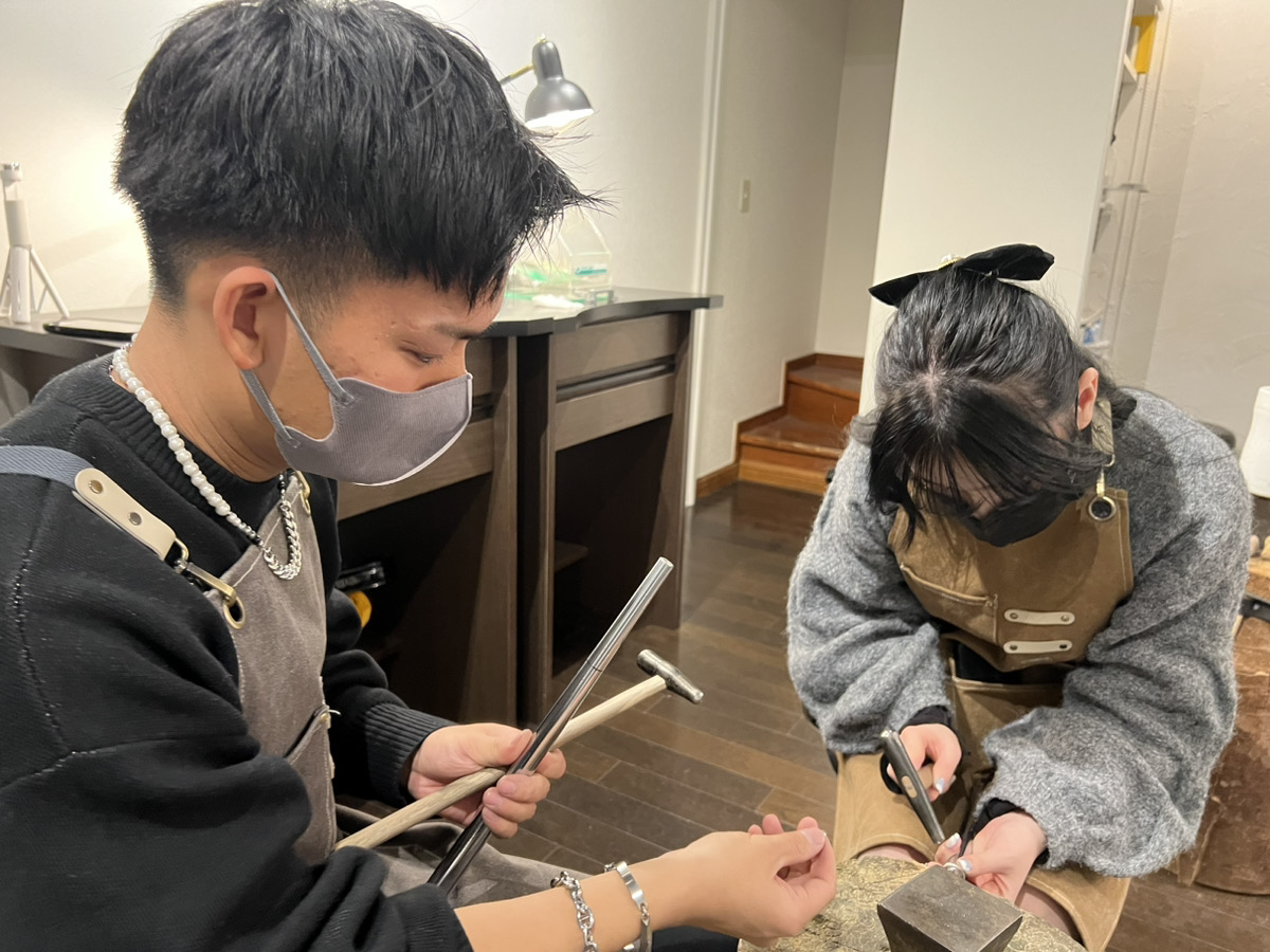 太めのリングは木槌叩きが女性には少し大変そうでしたが