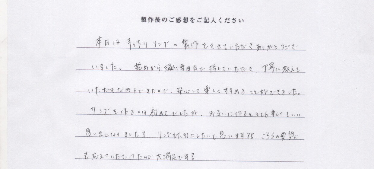 本日は手作りリング制作をさせて頂きありがとうございました。