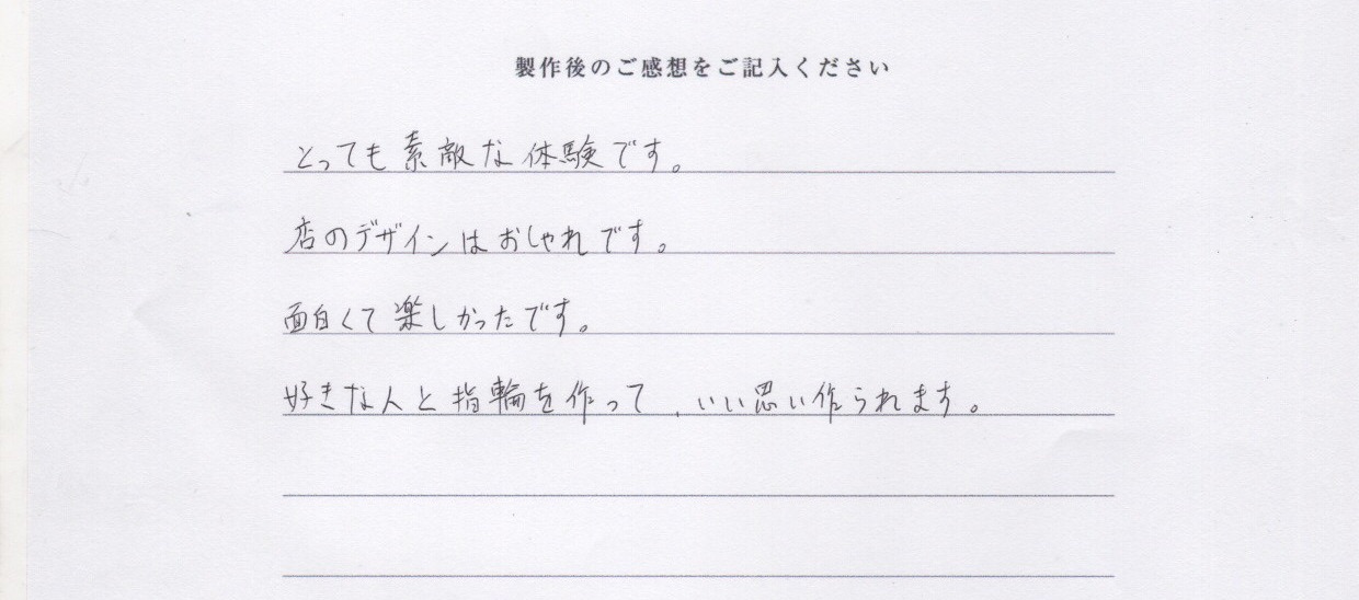 好きな人と指輪を作って良い思い出が作れます。