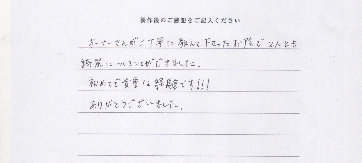オーナーさんが丁寧に教えてくださったお陰で二人共綺麗に作る事が出来ました。