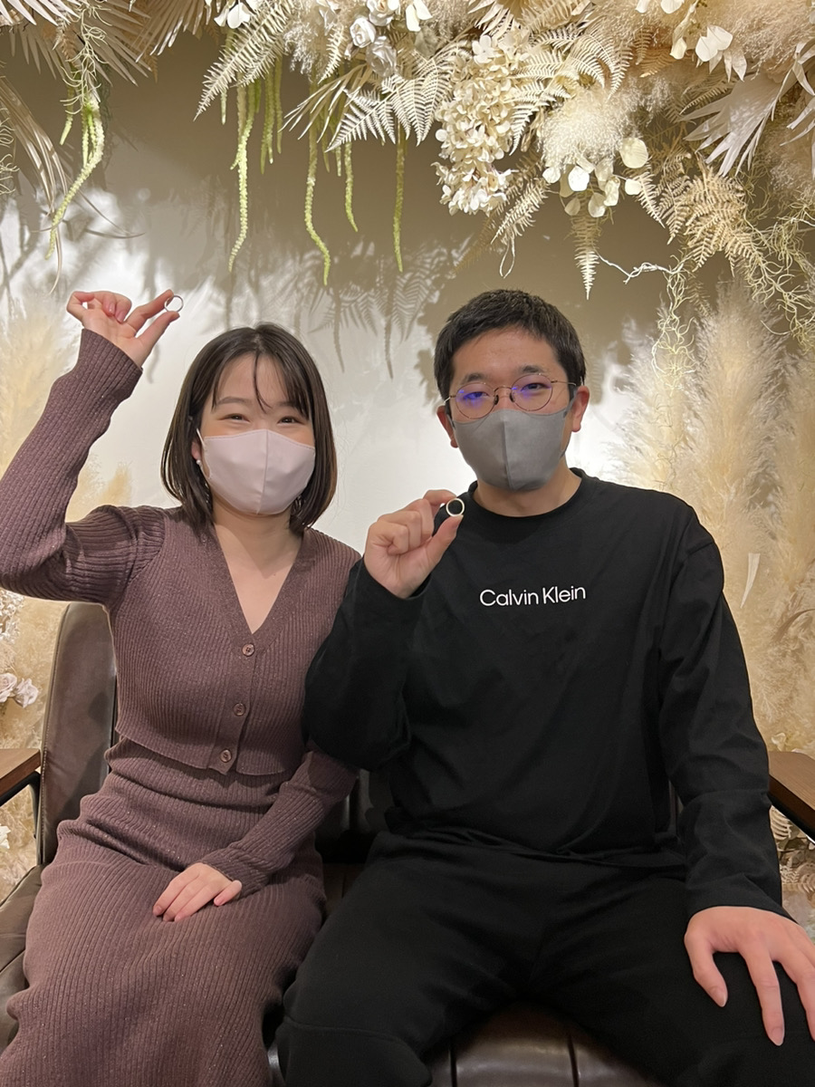極細のマット仕上げ平打ちペアリングをチョイス。
