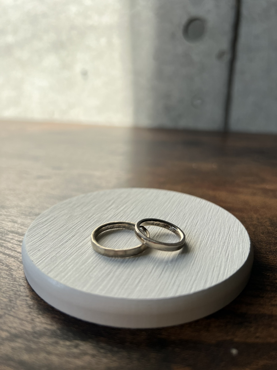 お互いの好みでそれぞれ違うデザインの結婚指輪を制作して頂きました!
