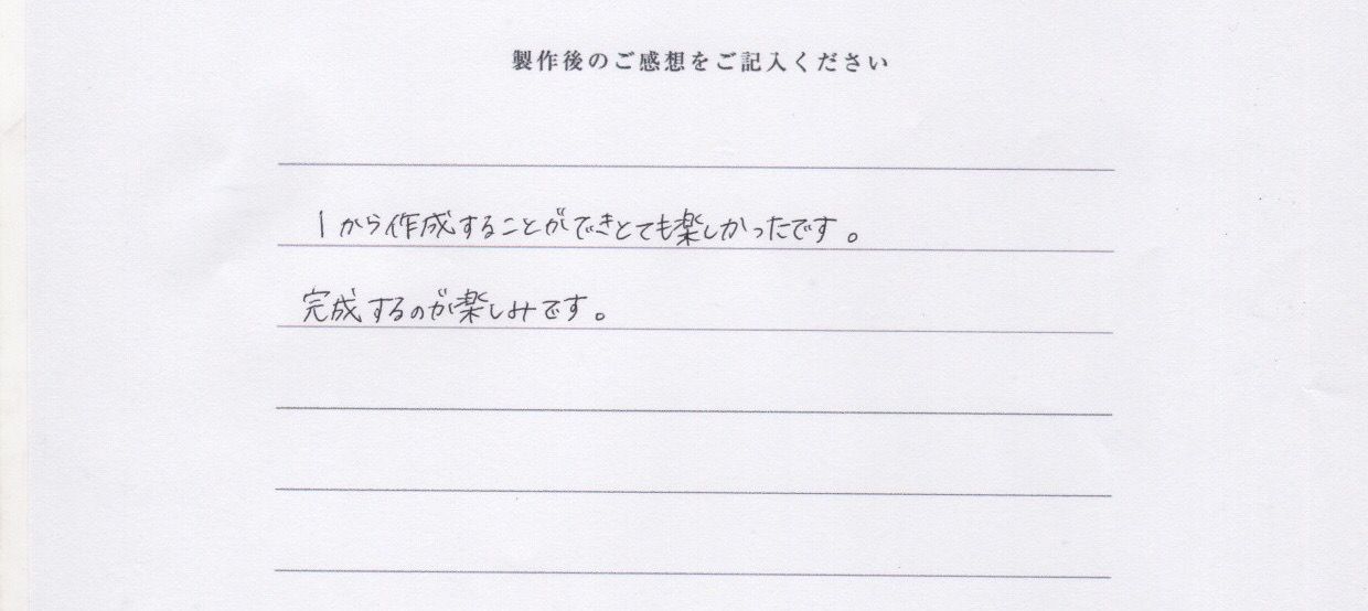 一から作成することが出来てとても楽しかったです。 完成するのが楽しみです。