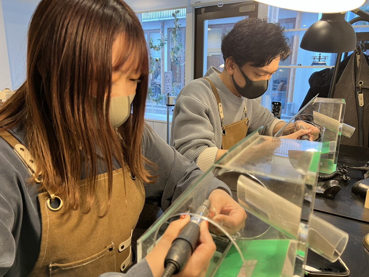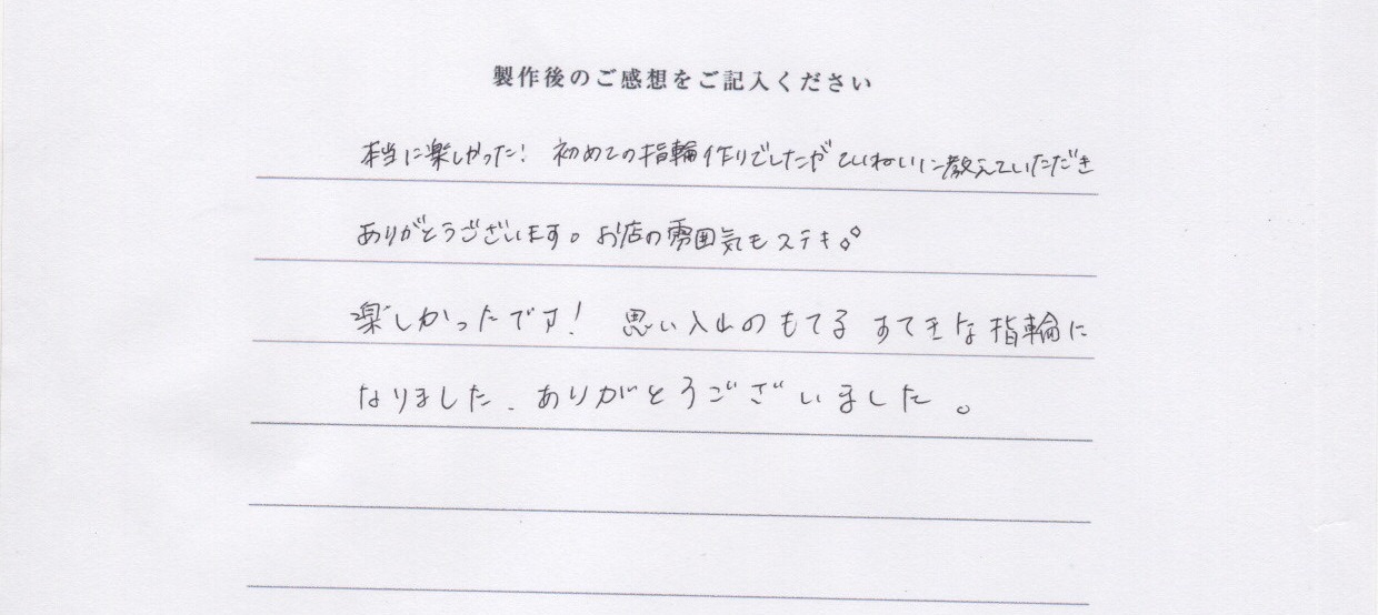 初めての指輪作りでしたが丁寧に教えて頂きありがとうございます。お店の雰囲気も素敵!