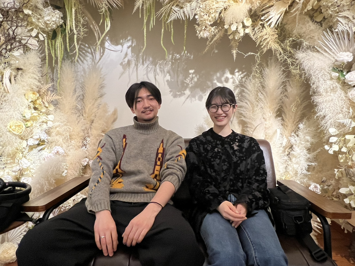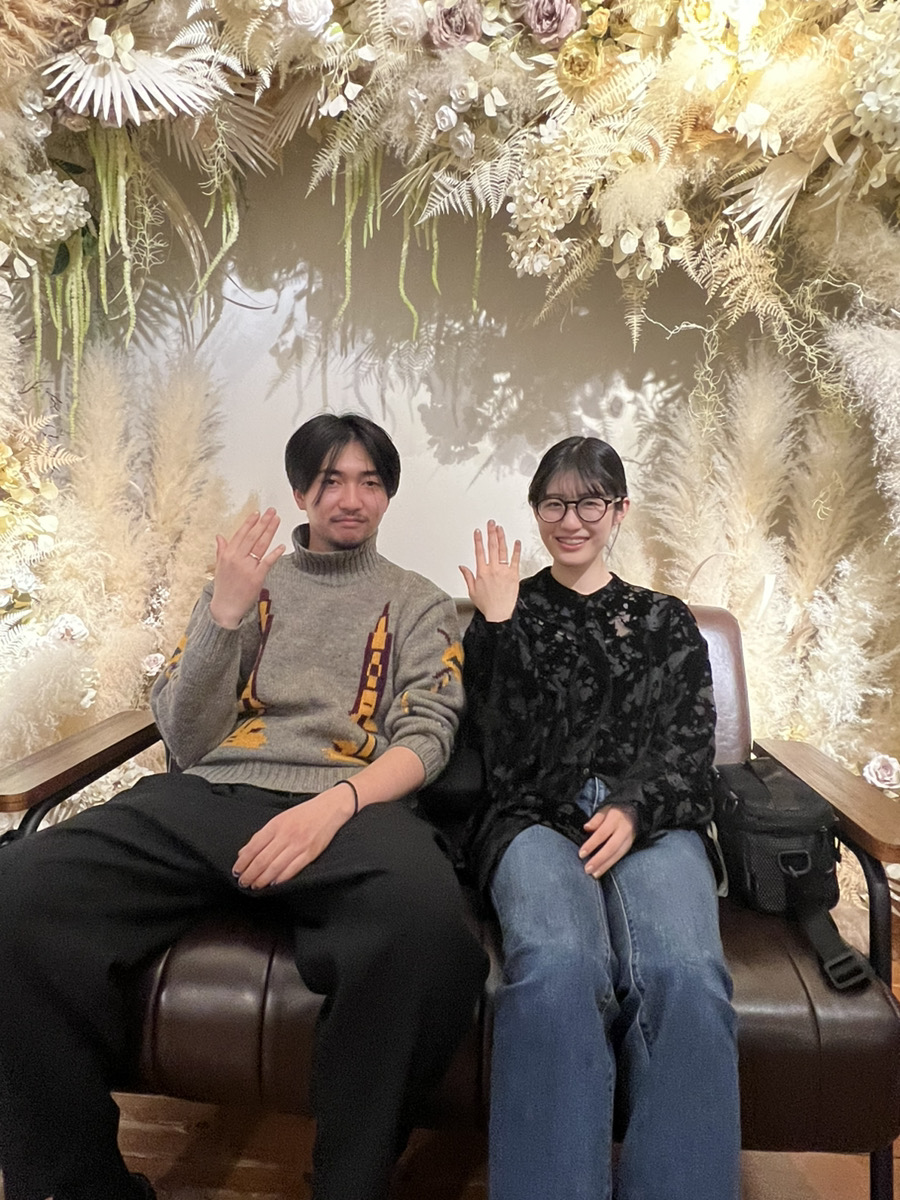 オシャレなお二人が選んだペアリングは太めの存在感あるリングに鏡面仕上げのおそろいリング。