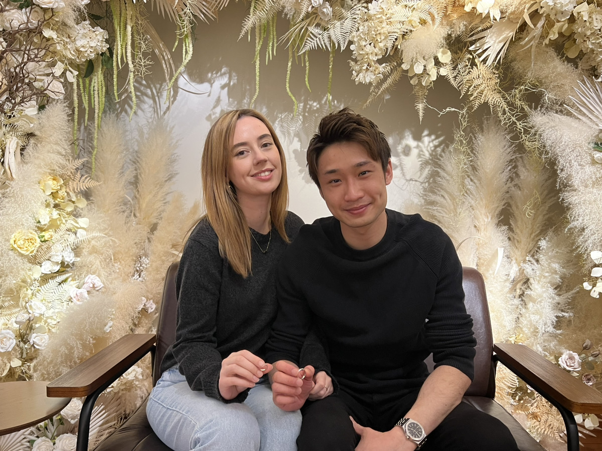 お二人の選んだデザインはシンプルかつエレガントな印象の鏡面仕上げペアリング。