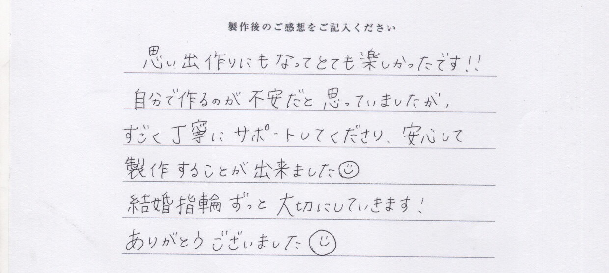 手作り結婚指輪|結婚指輪ずっと大切にしていきます! ありがとうございました。