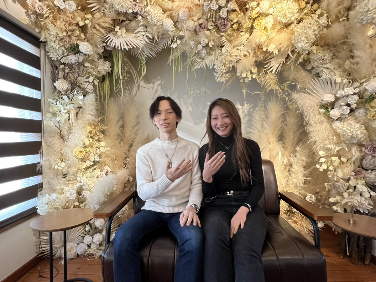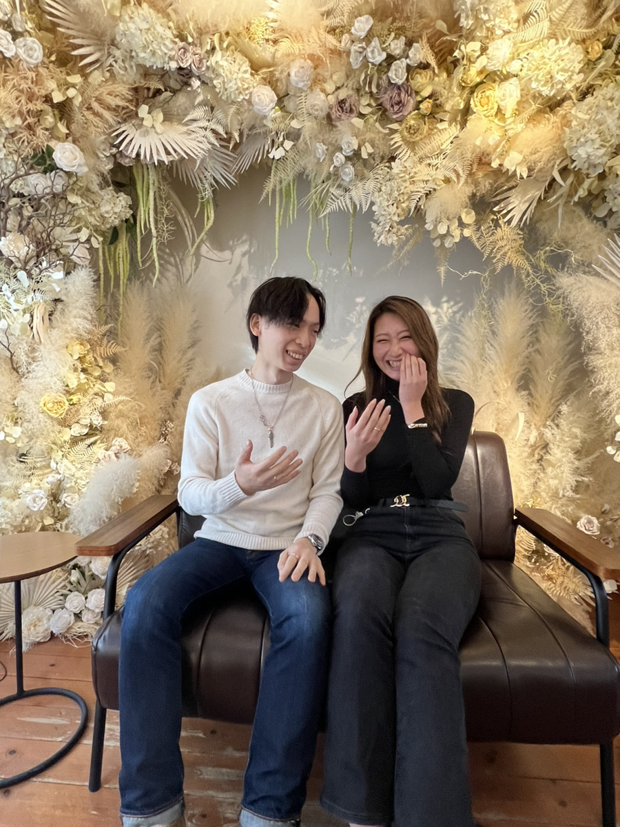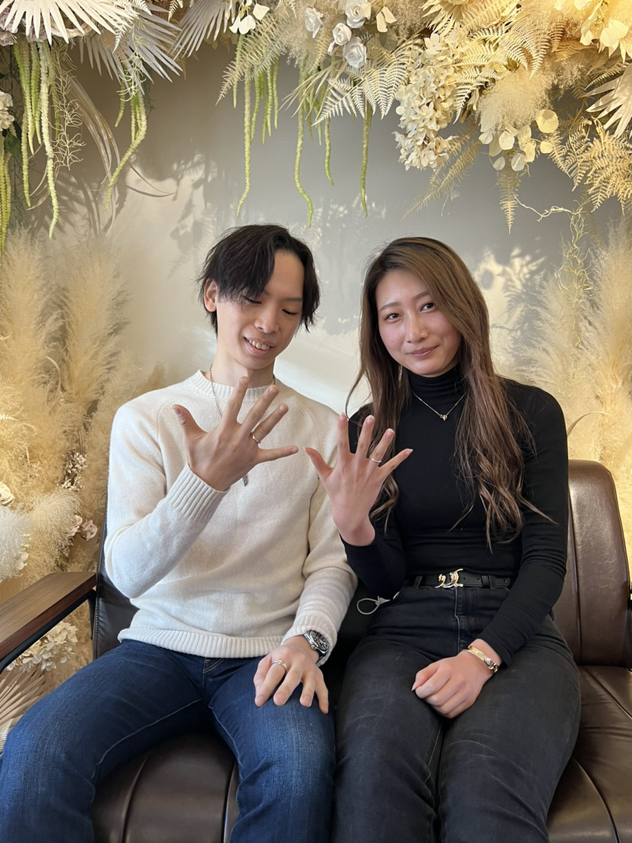 お二人が選んだペアリングはエレガント感ある細めの鏡面仕上げ。