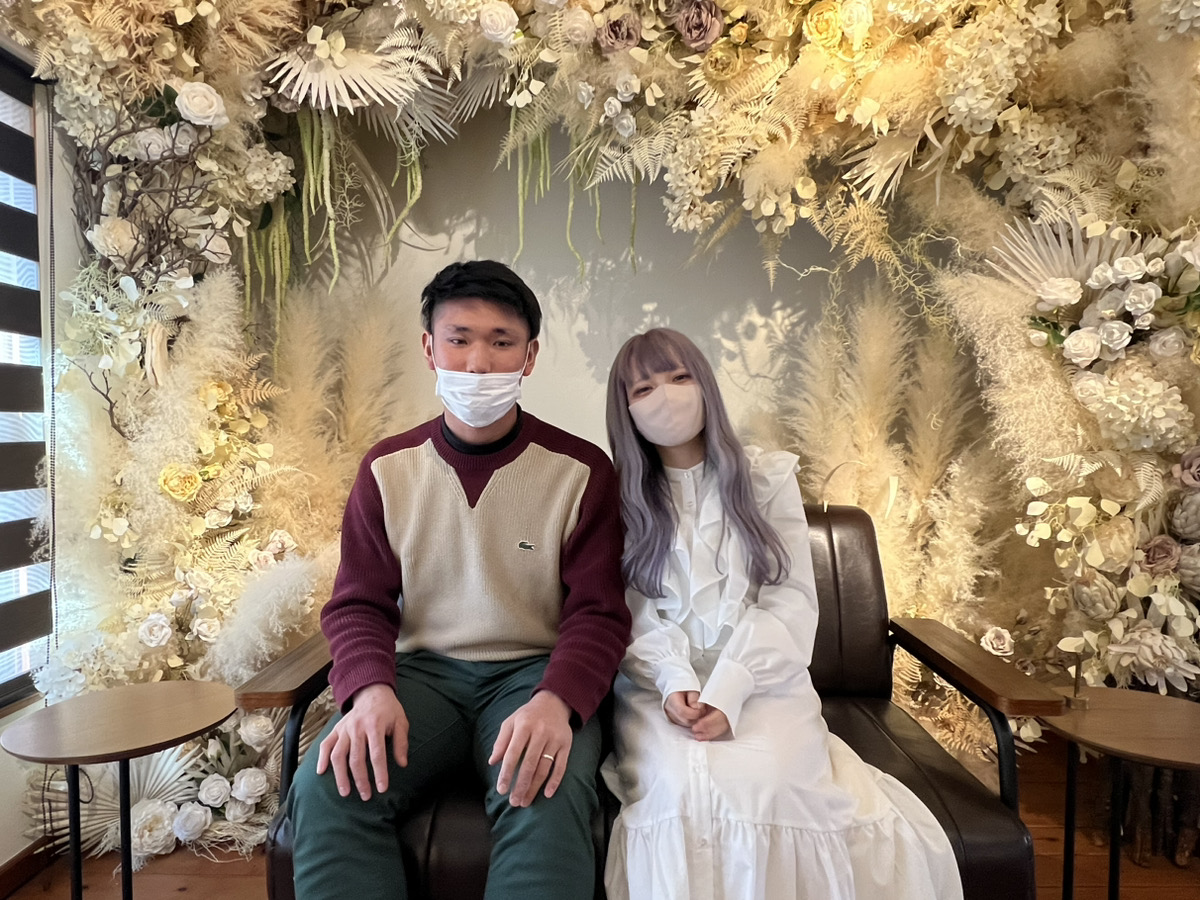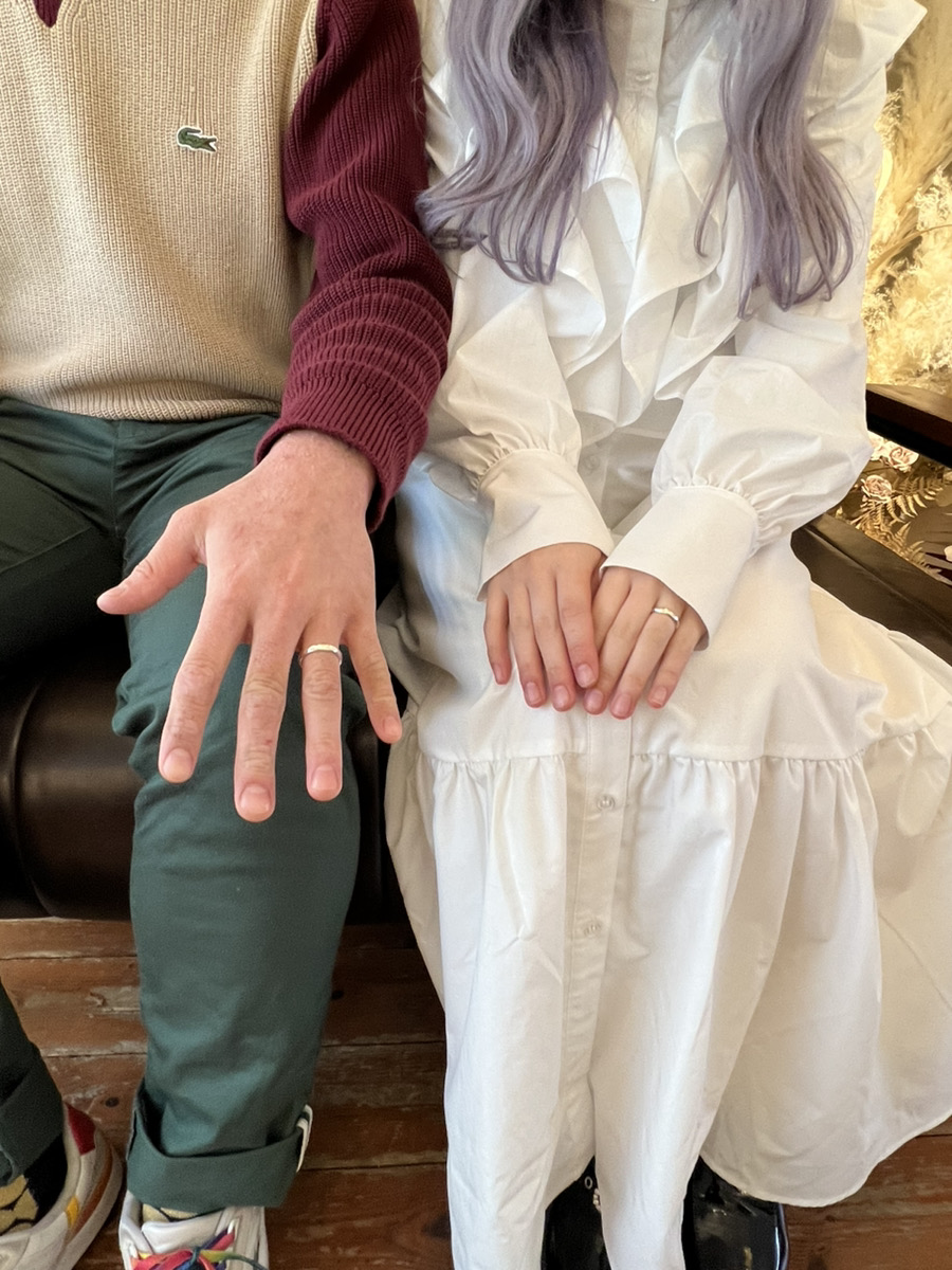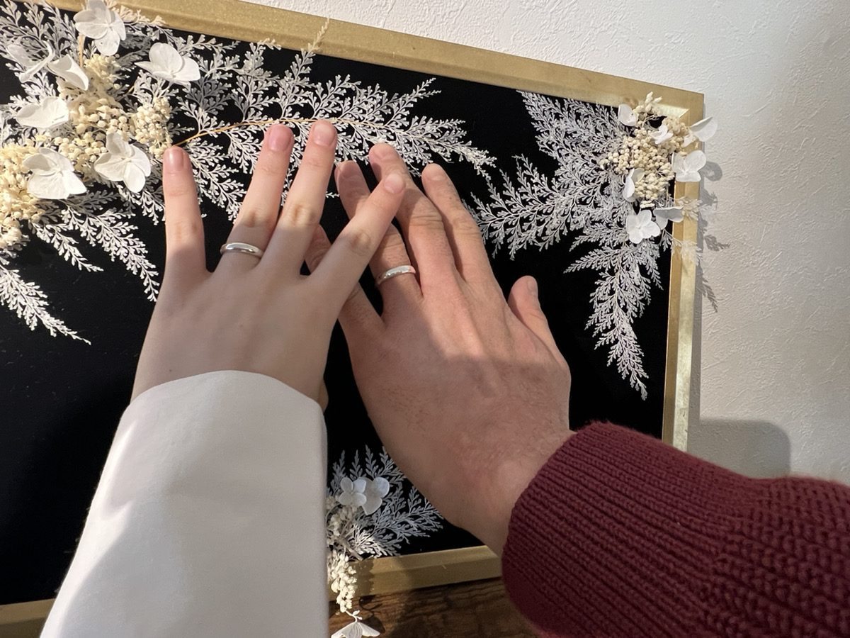 お二人が選んだデザインは太めの存在感あるリングを綺麗に磨き上げた鏡面仕上げのペアリング。