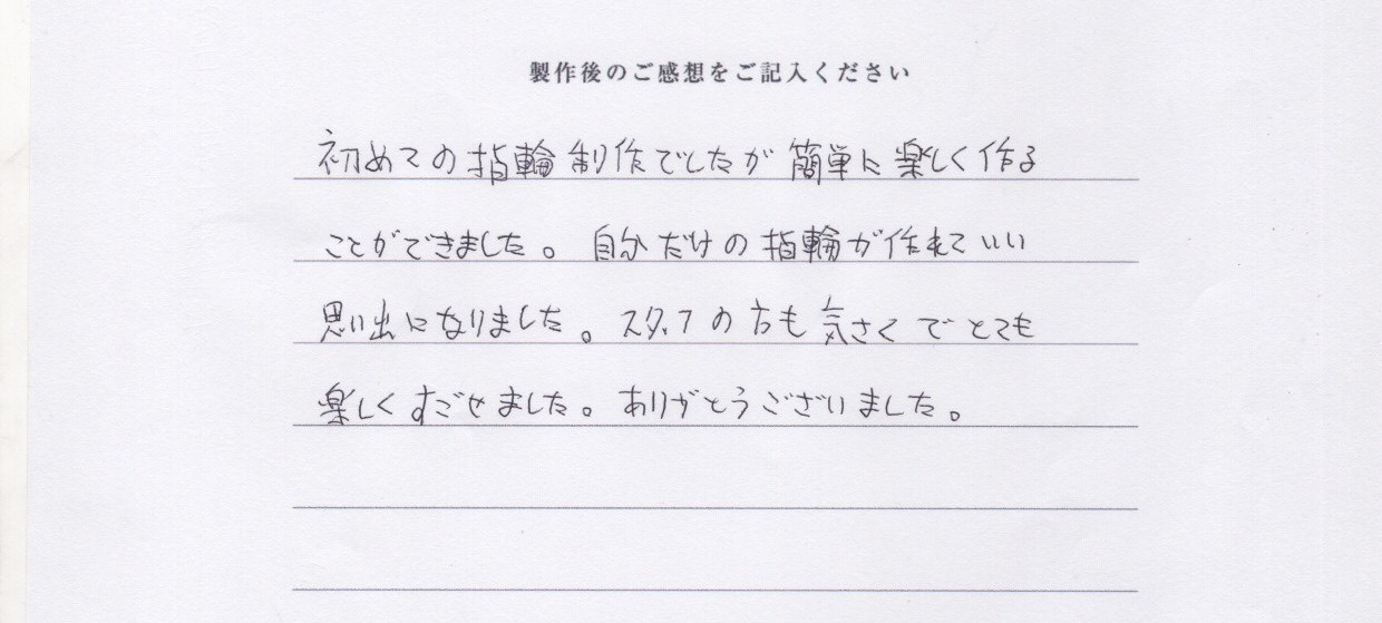 自分だけの指輪が作れていい思い出になりました。