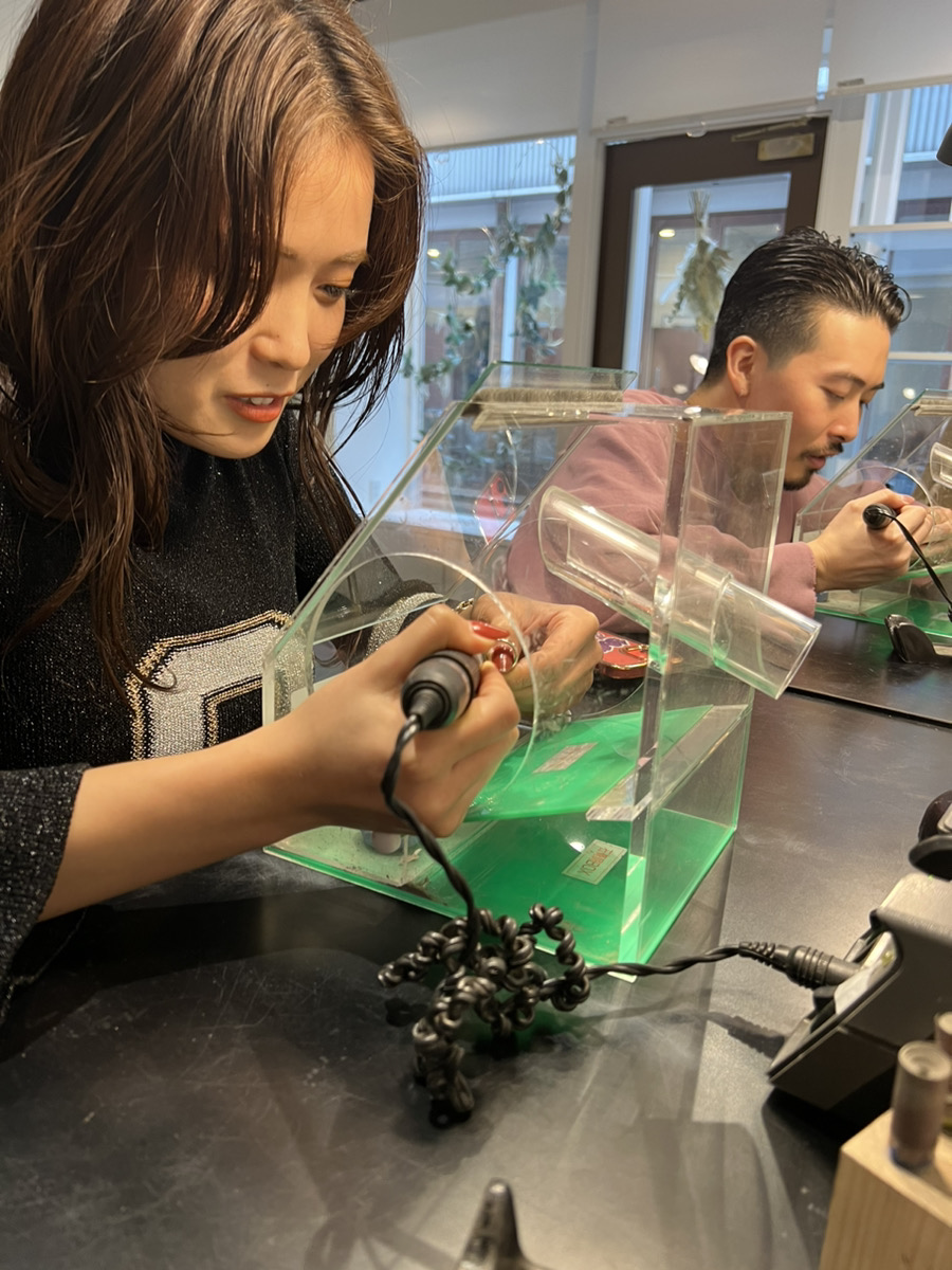 とても仲良くお互いのリングを制作して終始笑顔のお二人でした!