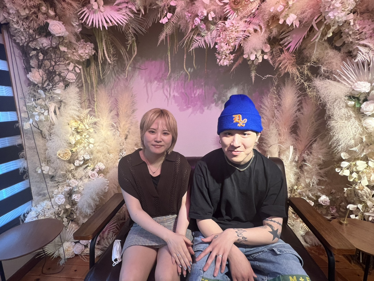 お二人の選んだペアリングは存在感ある太めのスクエア平打ちリングにピカピカの鏡面仕上げ。