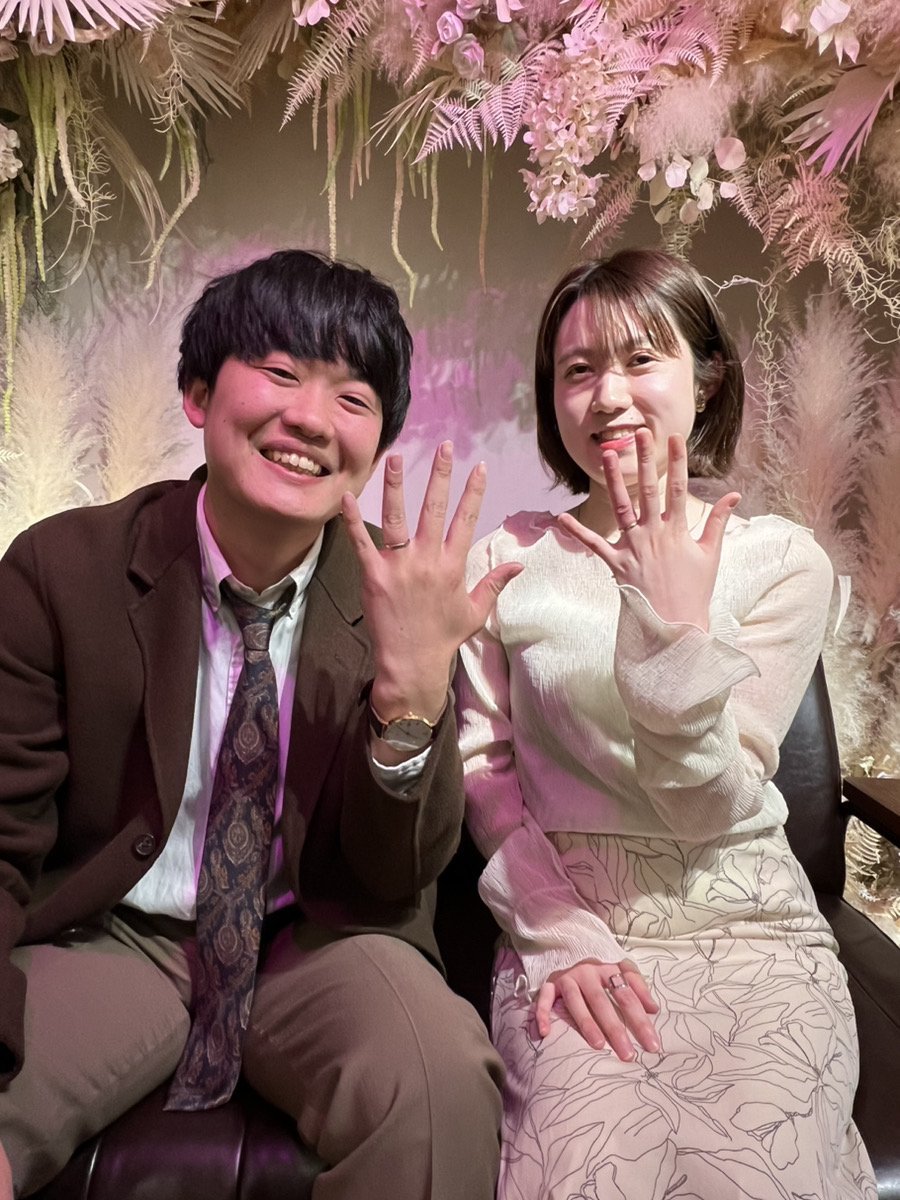しっかりお二人で話し合ってシャンパンゴールドの結婚指輪を制作して頂きました!