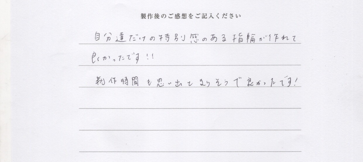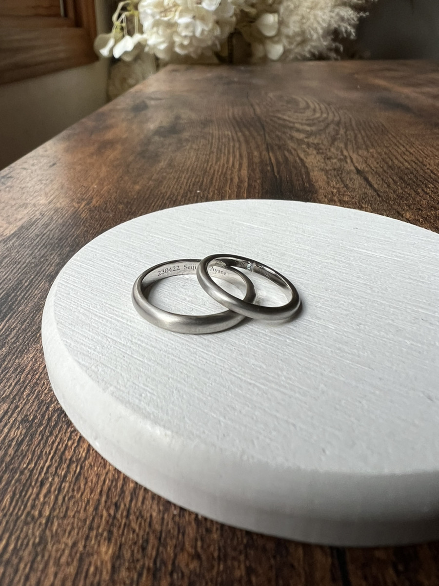 お似合いの細めリングマット仕上げのかっこいい結婚指輪完成。ありがとうございました