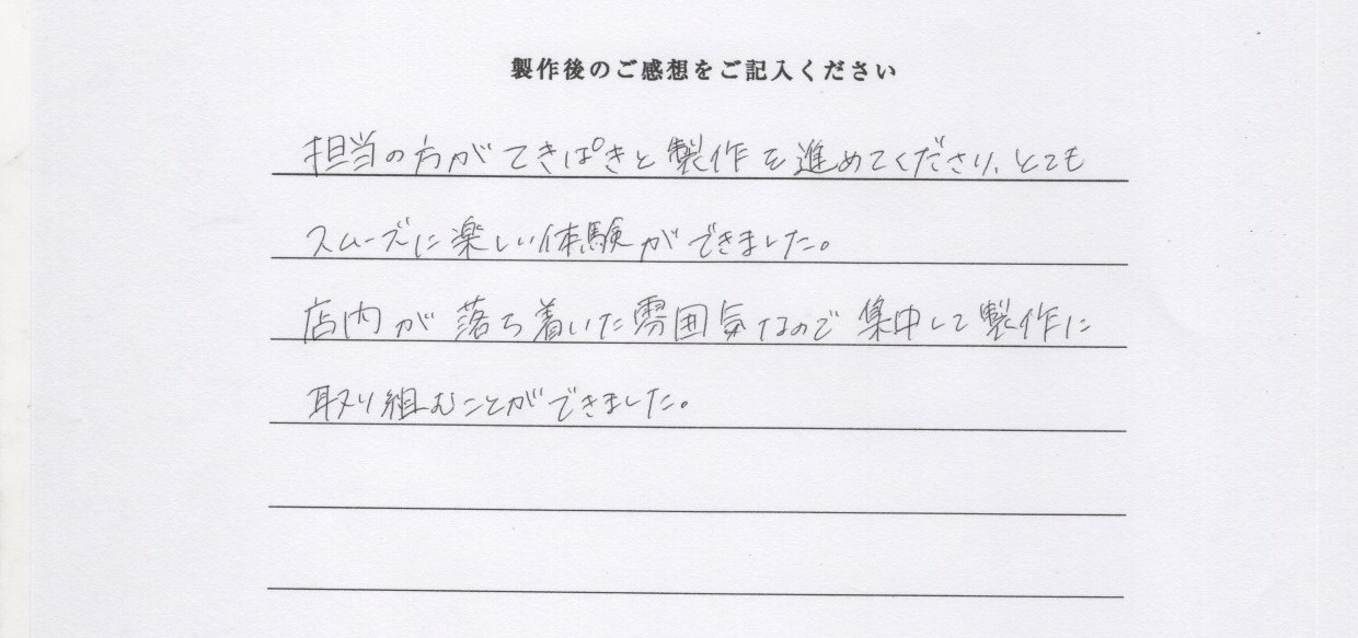 手作りペアリング|店内が落ち着いた雰囲気なので集中して制作に取り組む事ができました。