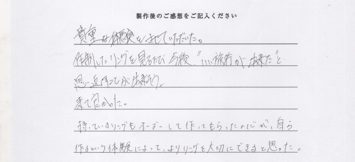 持っているリングもオーダーして作ってもらったのだが、自ら作るという体験によって、