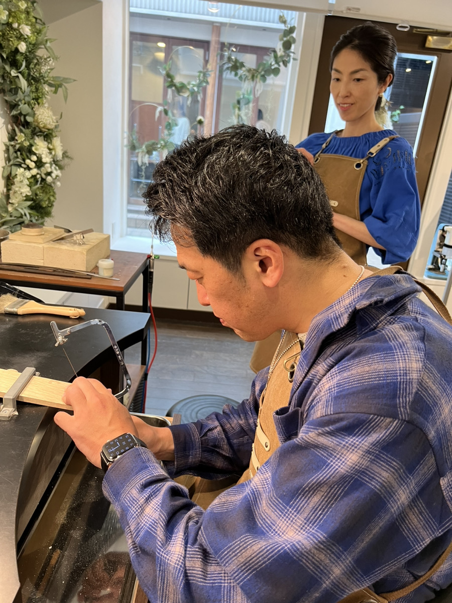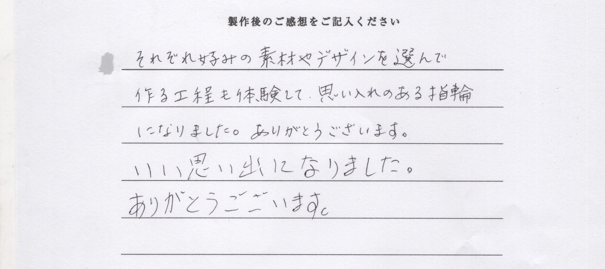 それぞれ好みの素材やデザインを選んで作る工程も体験して、思い入れのある指輪になりました。