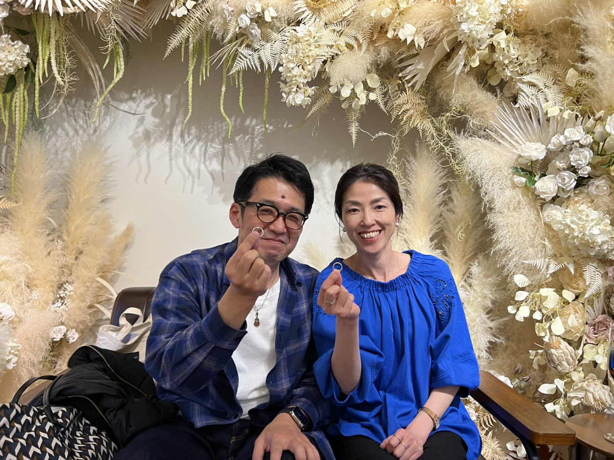 お二人それぞれ自身の好みに合うリングデザインを選ばれてお似合いの結婚指輪が出来上がりました!