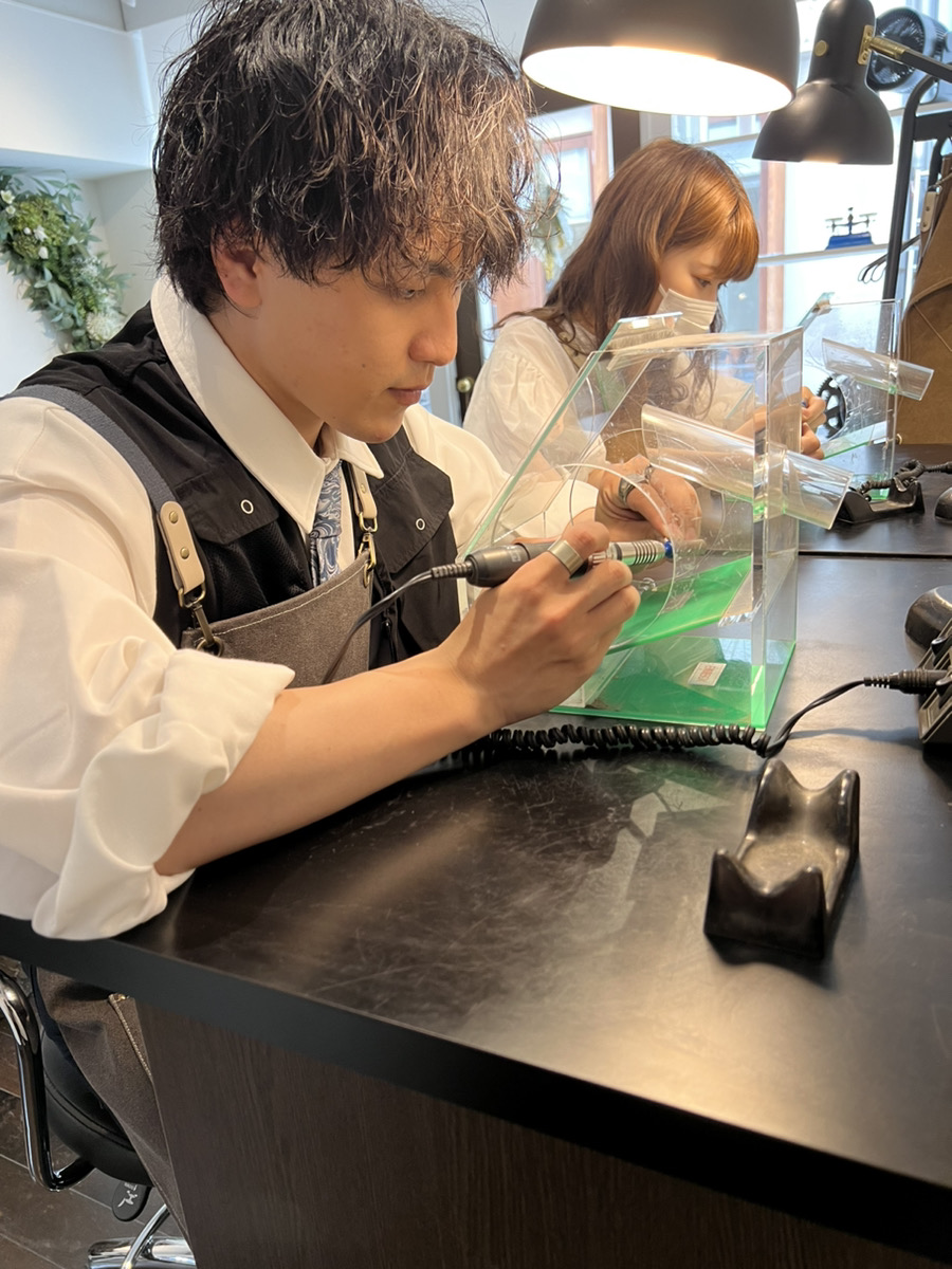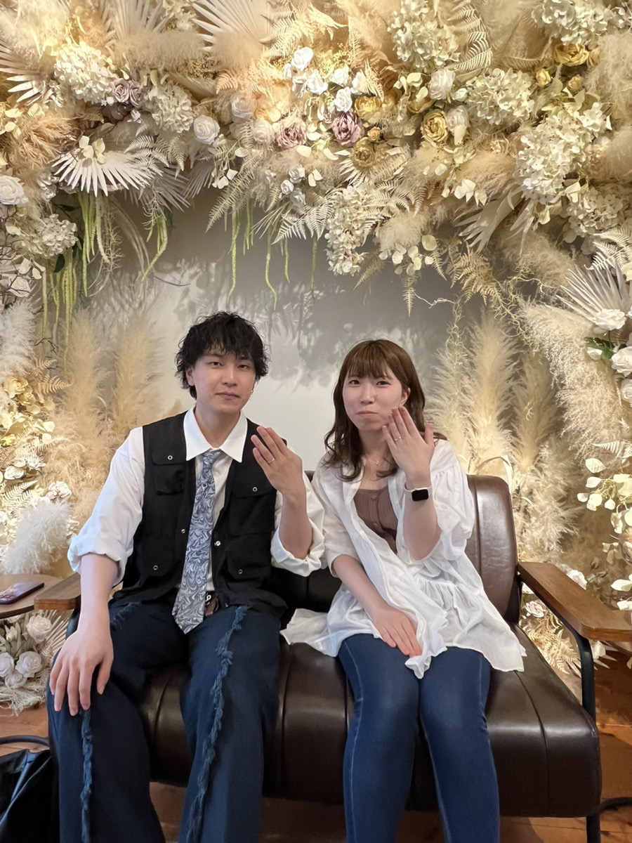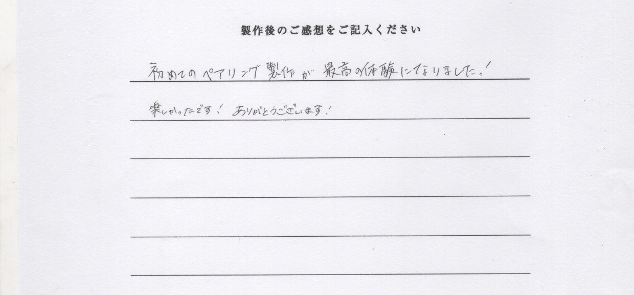 とても楽しそうに作業されて良い雰囲気の中綺麗なペアリングが完成しました♪