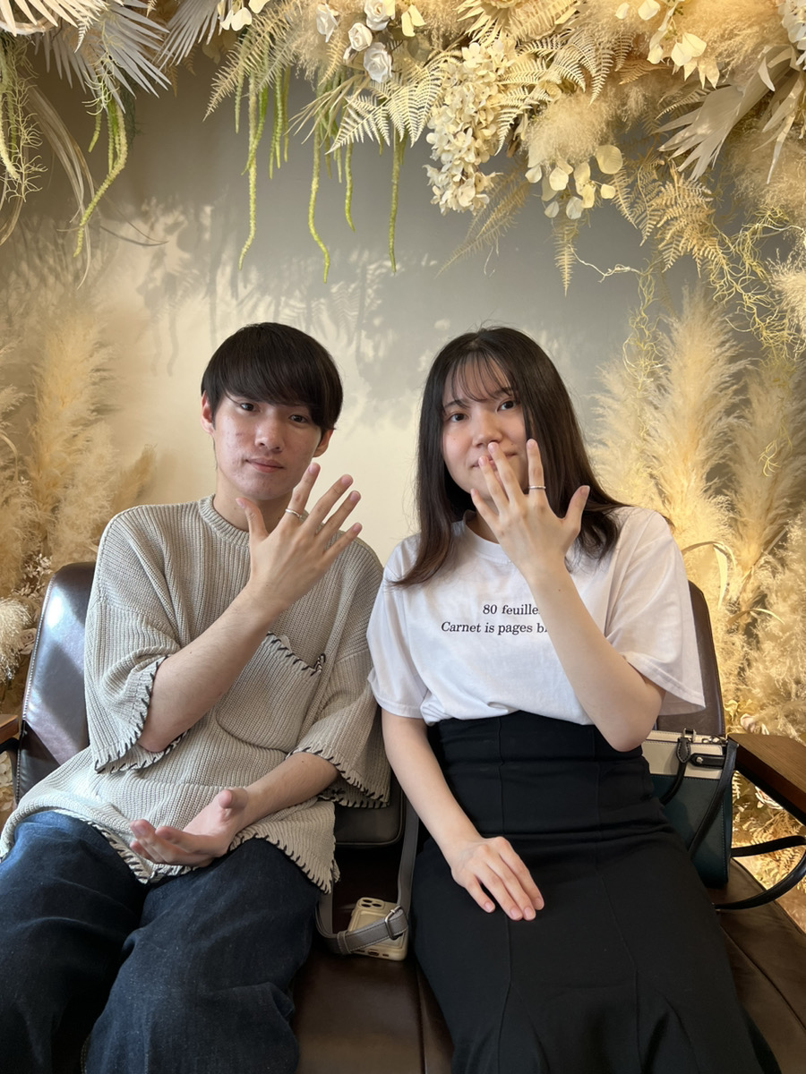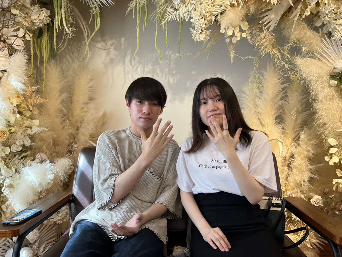 打ち合わせから楽しそうなお二人が選んだペアリングはそれぞれ好みのデザイン。