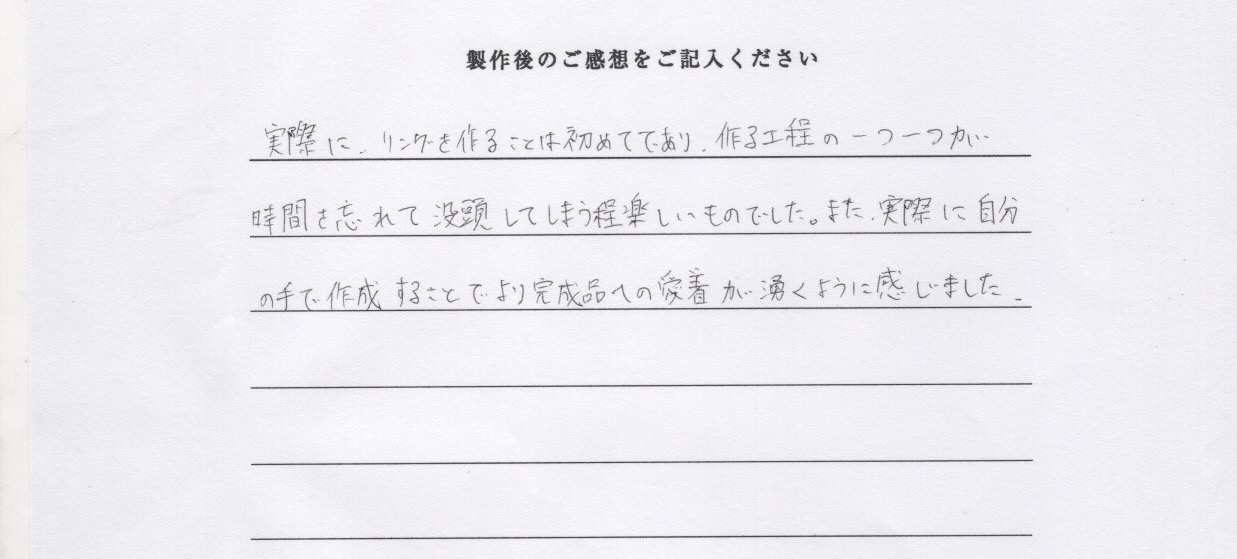 • 手作りペアリング|実際に自分の手で作成する事により完成品への愛着が湧くように感じました。(5)