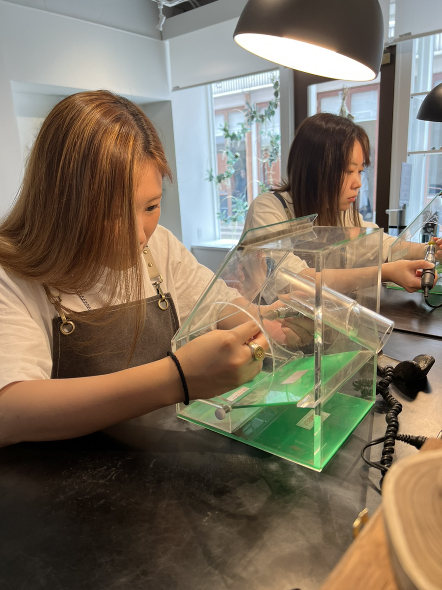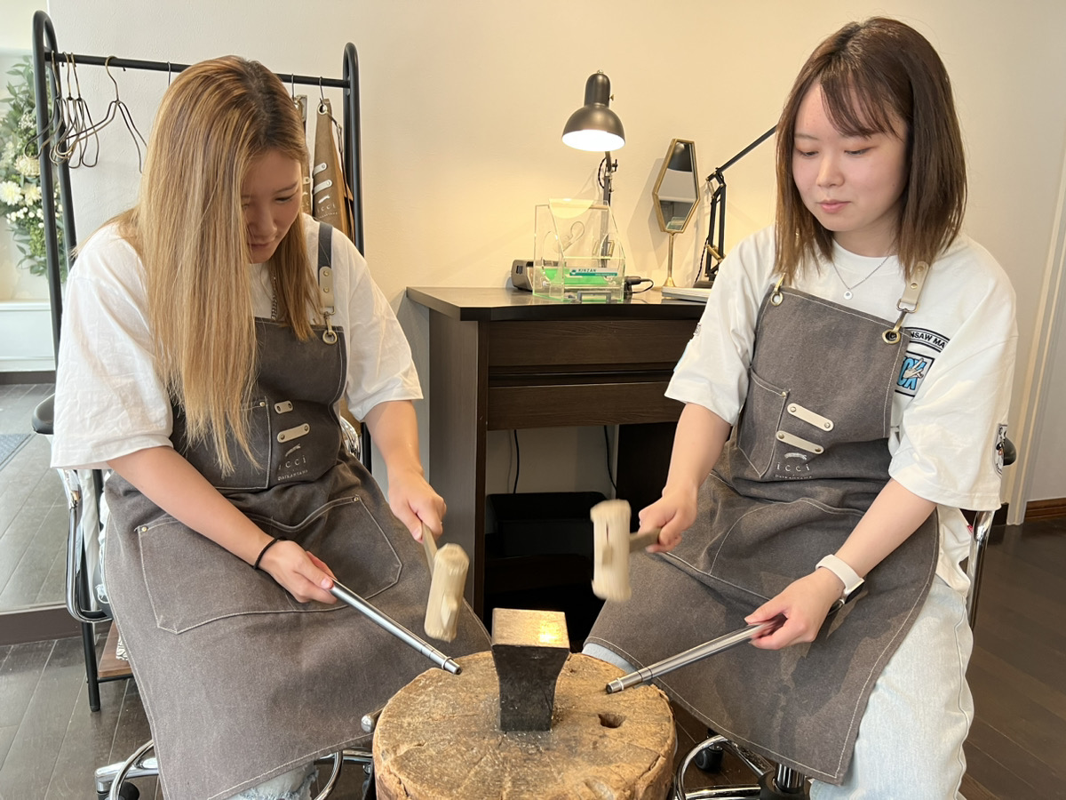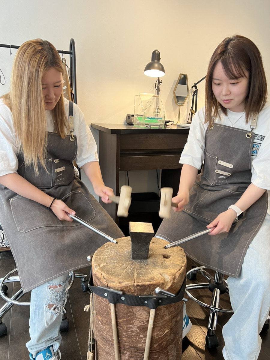 お二人おそろいのハンマー仕上げピンキーリングを制作。