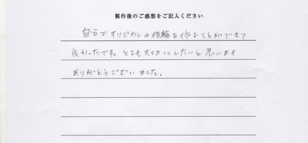 自分でオリジナルのリングを作る事が出来て良かったです。 とても大切にしたいと思います。