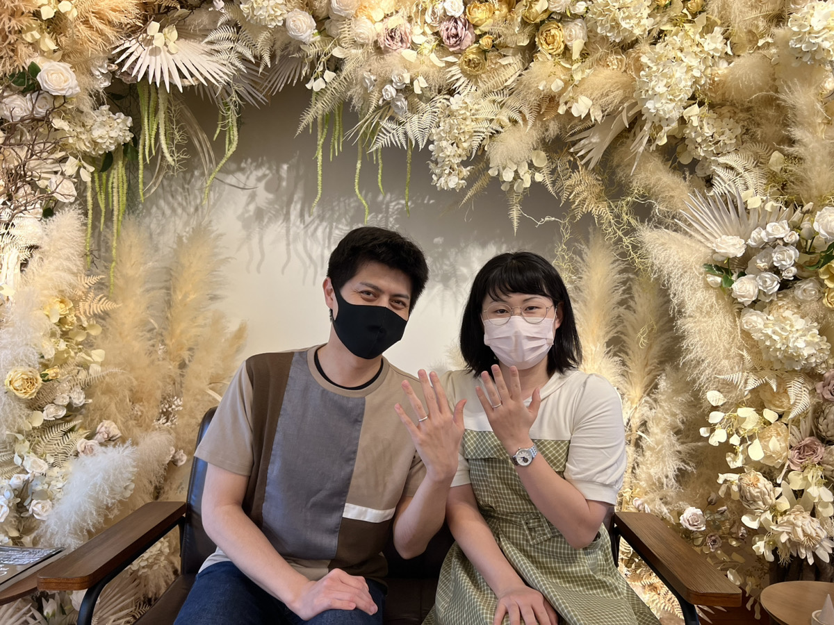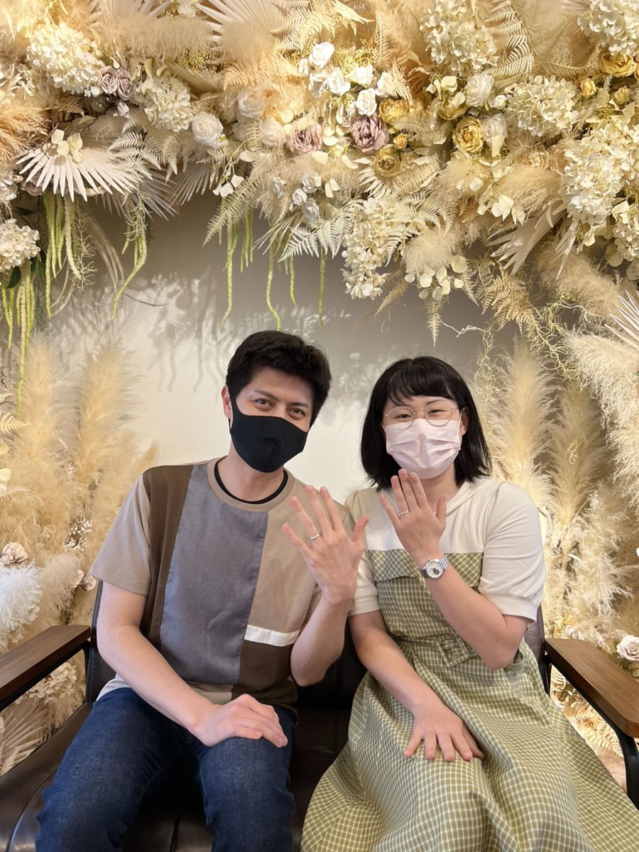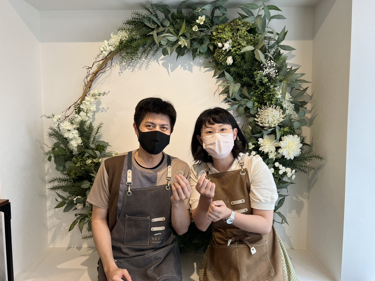 お二人仲良くおそろいの鏡面仕上げペアリング制作。