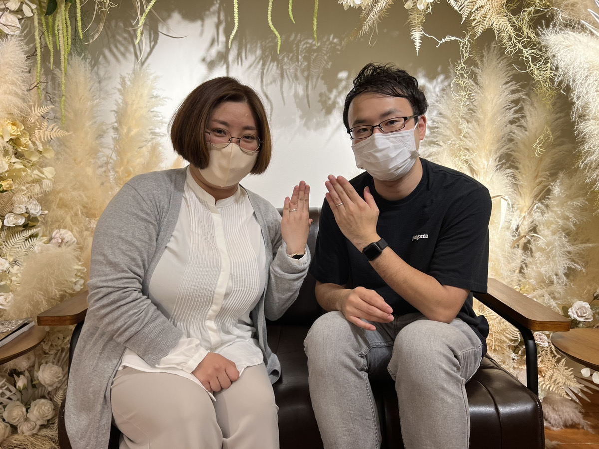 そんなお二人が選んだペアリングデザインは独特な輝きのスターダスト仕上げ。
