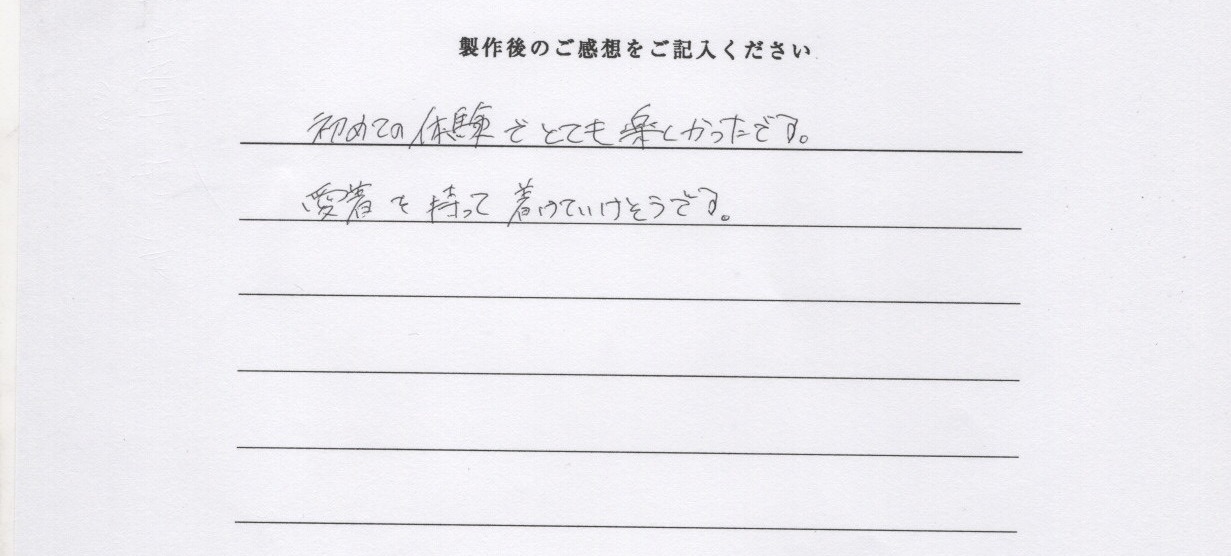初めての体験でとても楽しかったです。 愛着を持って着けていけそうです。