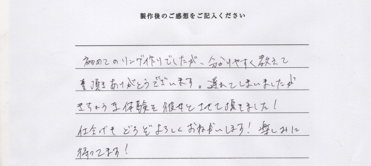 手作りペアリング|初めてのリング作りでしたが、分かりやすく教えて頂きありがとうございます。