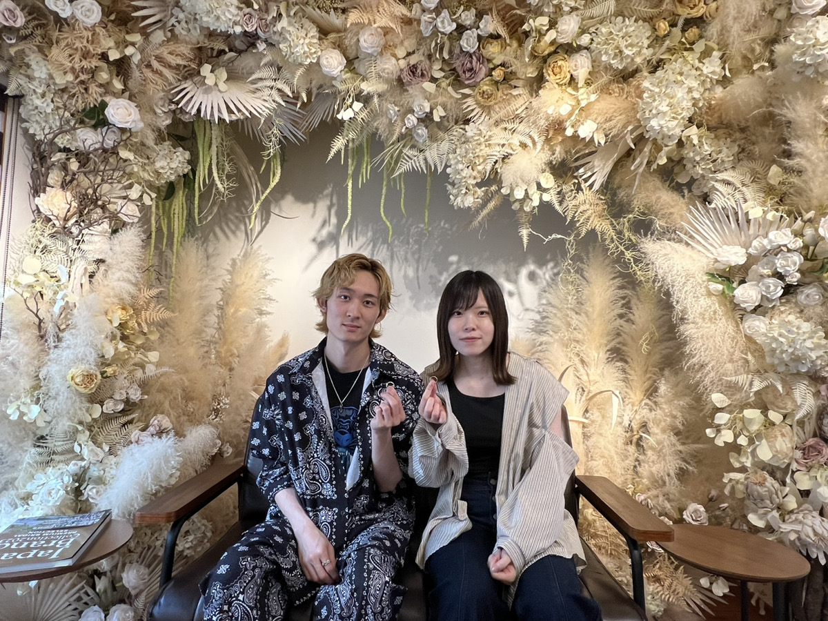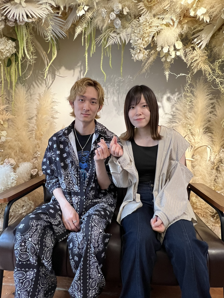 お二人の選んだペアリングデザインはおそろいのハンマー仕上げリング。