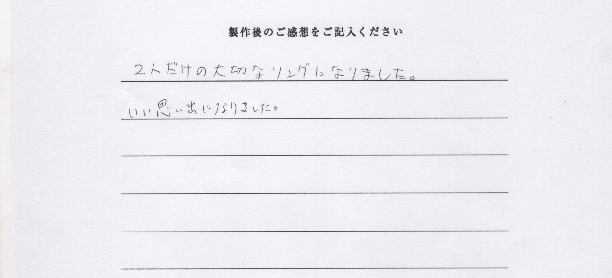 2人だけの大切なリングになりました。 良い思い出になりました。