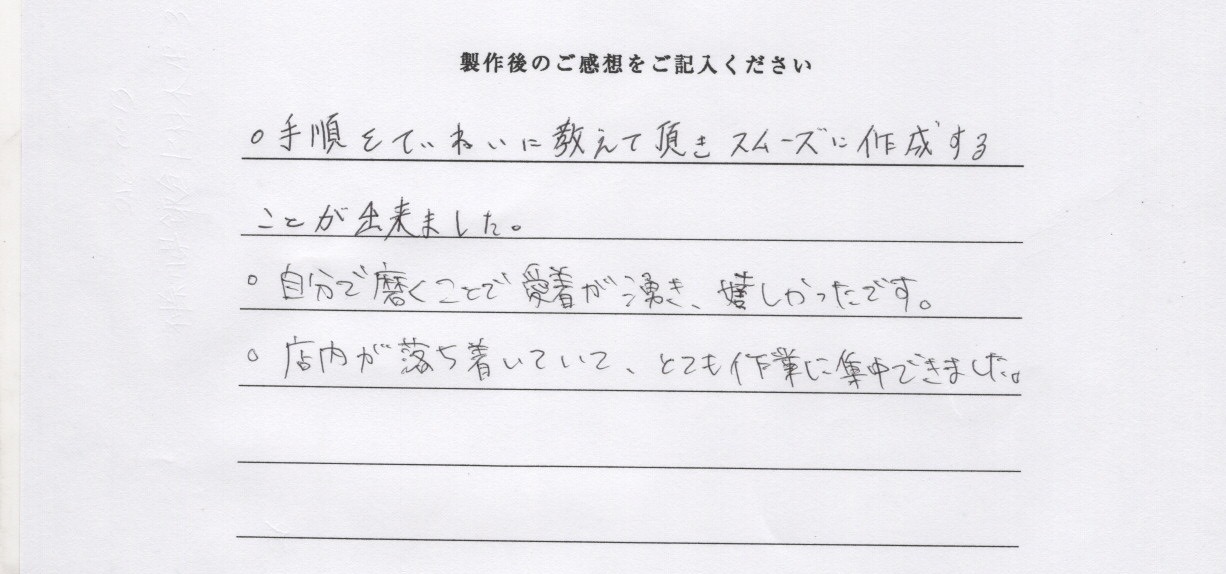 ・自分で磨くことで愛着が湧き、嬉しかったです。