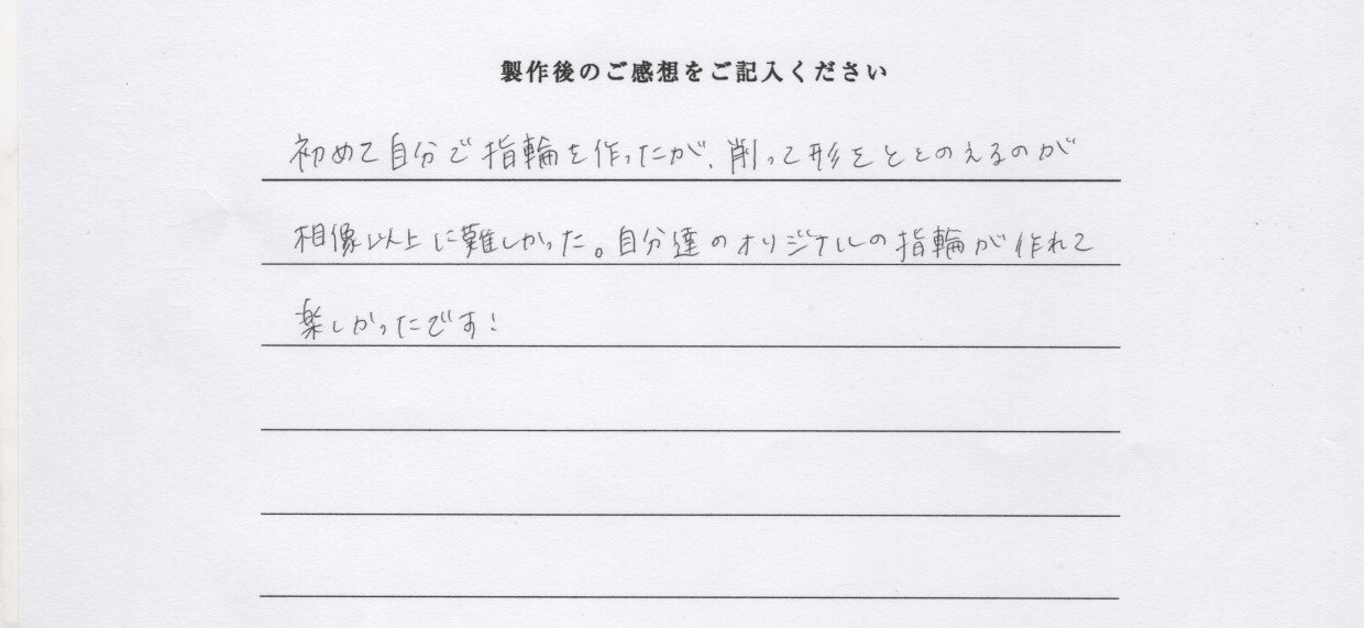 自分達のオリジナルの指輪が作れて楽しかったです!