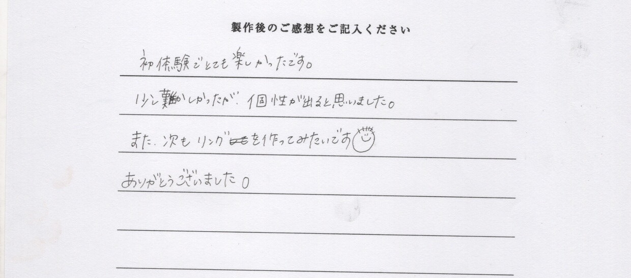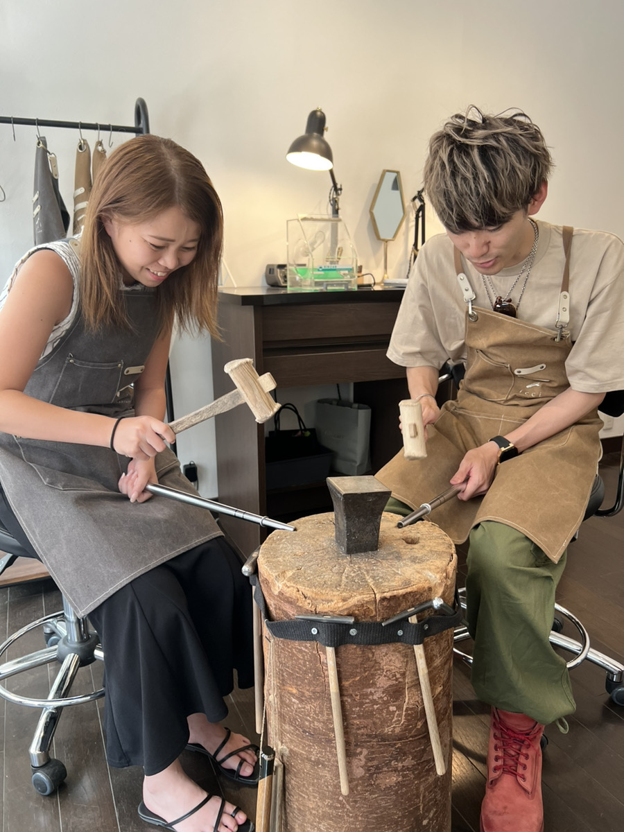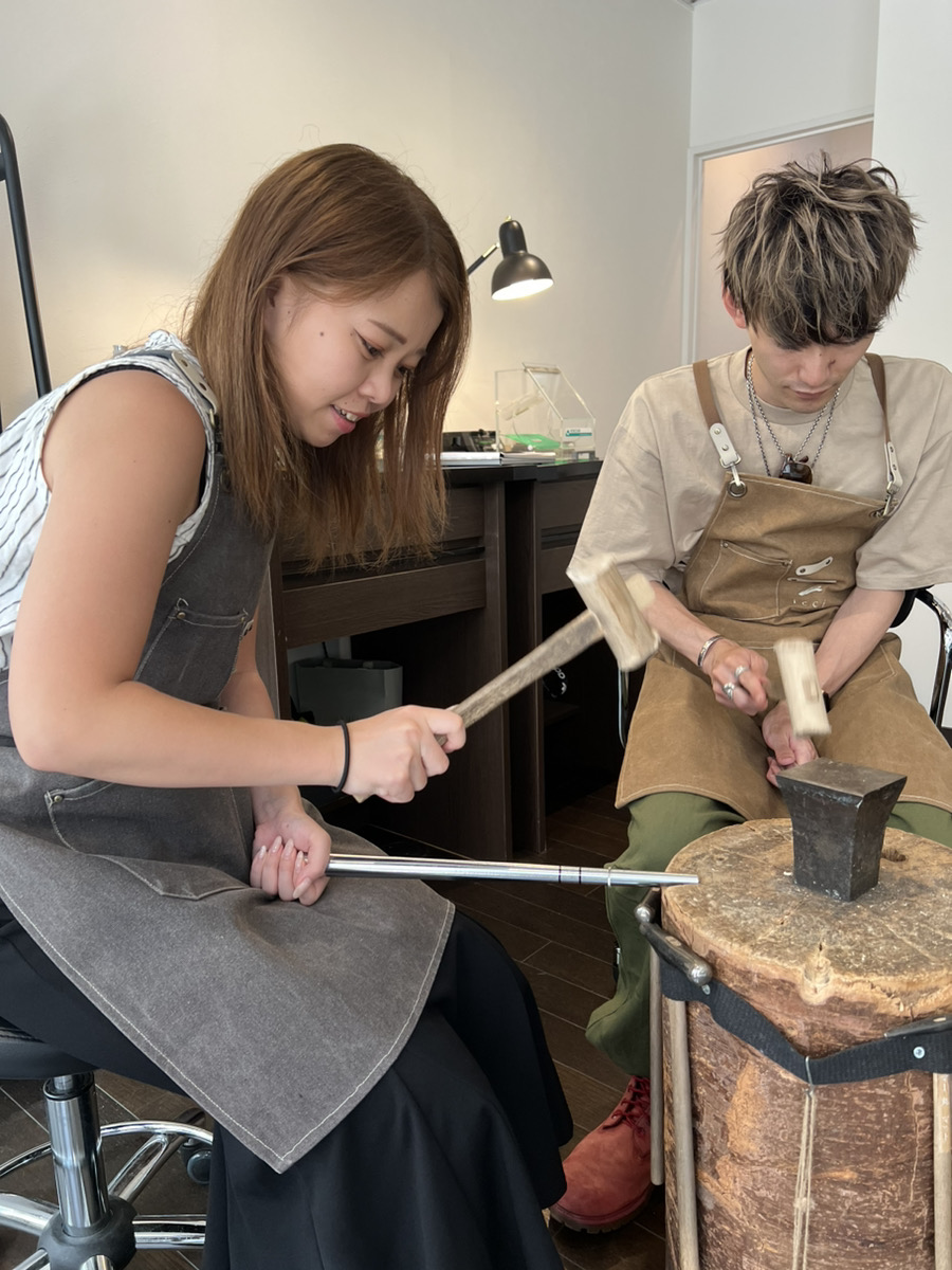 彼の太めのリングは木槌叩きが少し大変ですが一生懸命頑張ってくれました!
