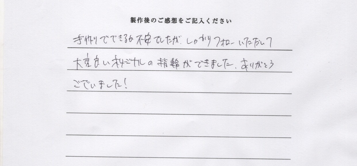 手作りでできるか不安でしたが、しっかりフォローいただいて