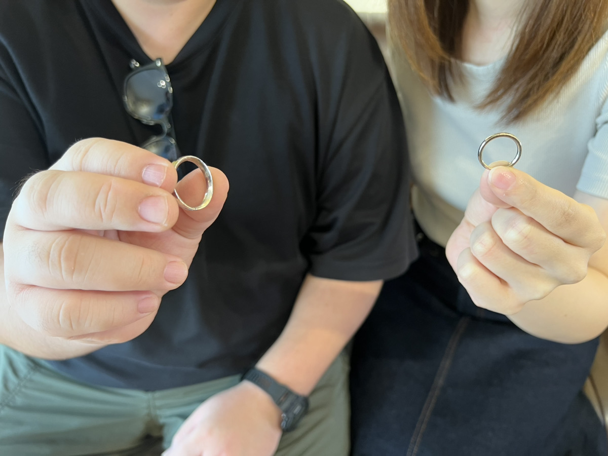 手作り感と温かみあるハンマー仕上げの結婚指輪を選択されました。