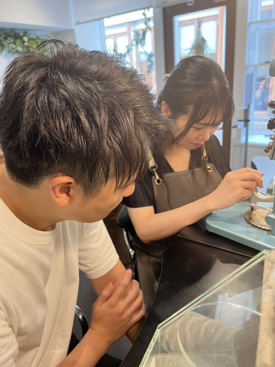 リング選びからとても楽しそうにされて良い雰囲気の中作業スタート。