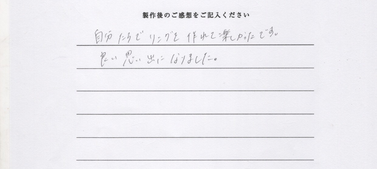 自分達でリングを作れて楽しかったです。 良い思い出になりました。