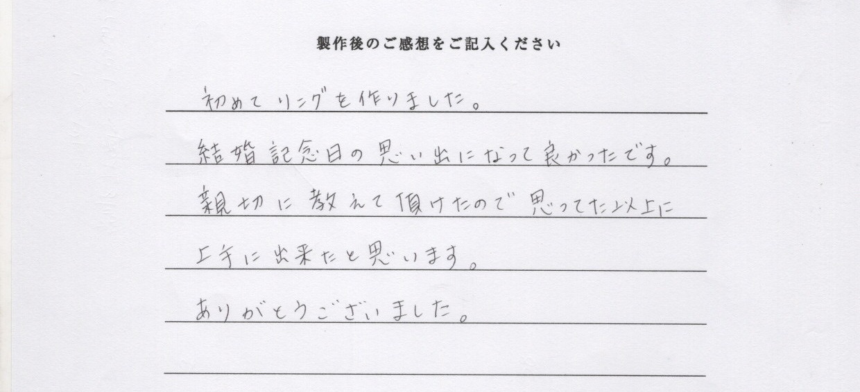 手作りペアリング|結婚記念日の思い出になって良かったです。