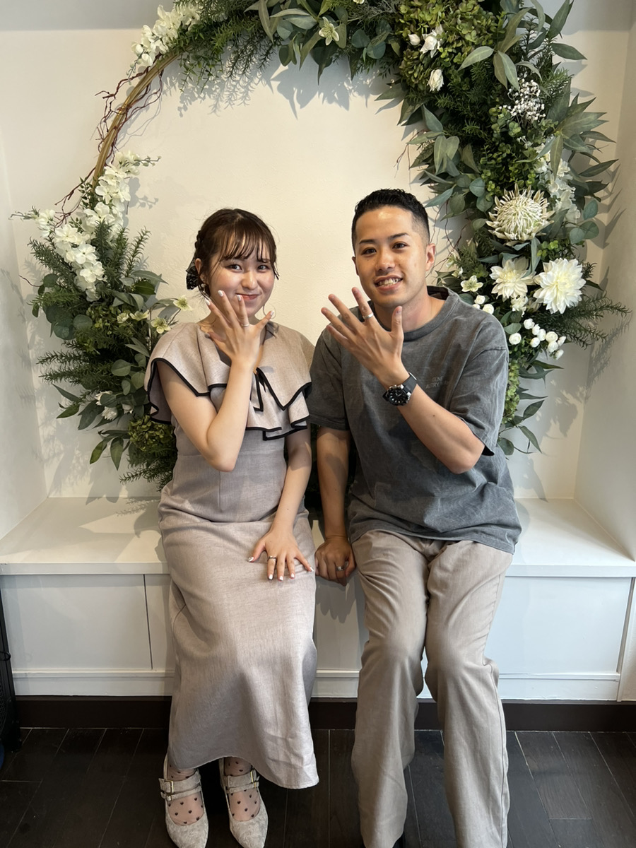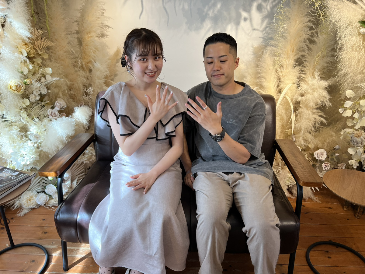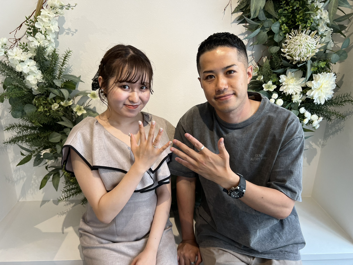 お二人それぞれ好みに合ったリング幅でマット仕上げのスタイリッシュなリングを制作。