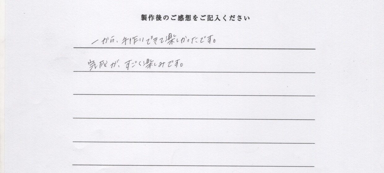 一から手作りができて楽しかったです。 完成がすごく楽しみです。