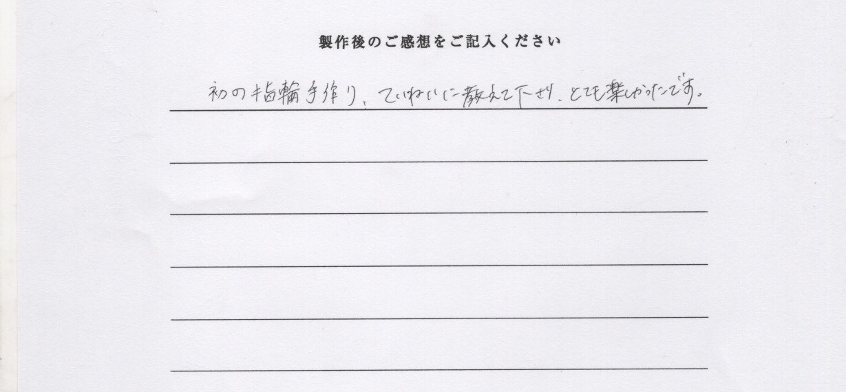 初の指輪手作り、ていねいに教えて下さり、とても楽しかったです。