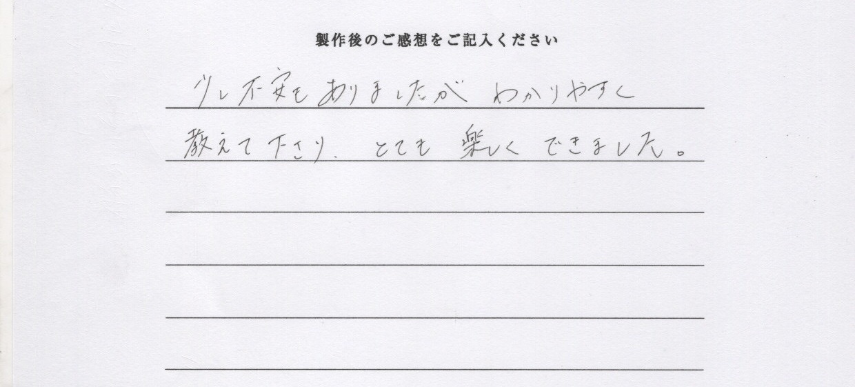 少し不安もありましたがわかりやすく教えて下さり、とても楽しくできました。