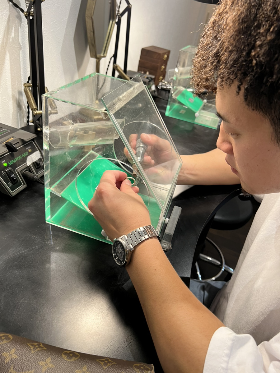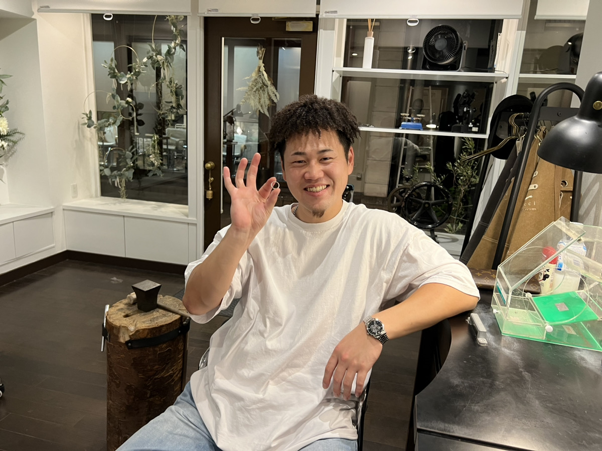 優しい彼は鏡面仕上げのエレガント感あるリングを制作。