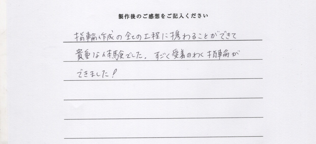 指輪作成の全ての工程に携わることができて貴重な体験でした。