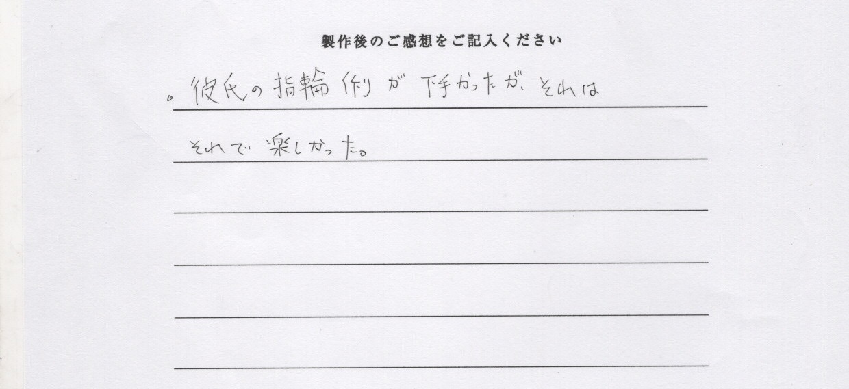 彼氏の指輪作りが下手だったが、それはそれで楽しかった。